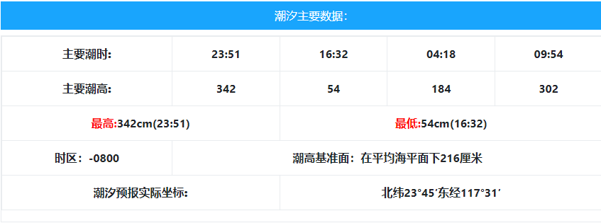 潮汐受天气和地理位置影响会有误差,数据只供参考。