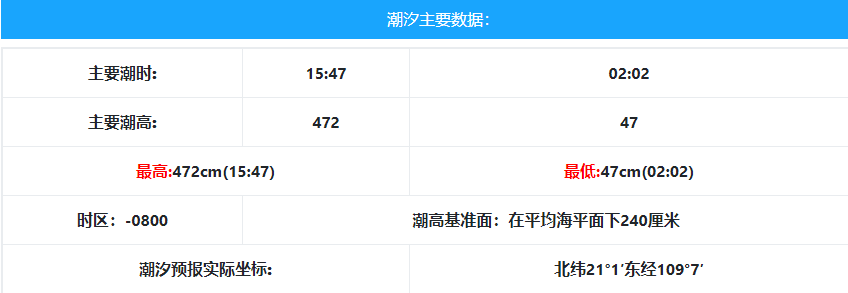潮汐受天气和地理位置影响会有误差,数据只供参考。